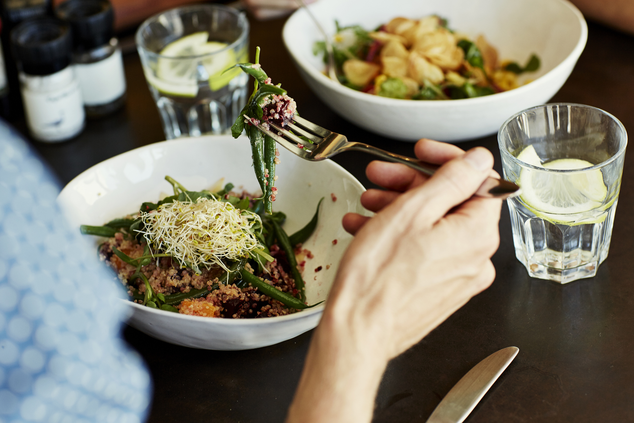 - Tomarse un tiempo prudente para comer e incentivar la masticación: comer sin distracciones y tomarse al menos 20 minutos para esto. Además, la saciedad se ve regulada por la masticación. Si tienes un tiempo y puedes masticar más veces y comer la comida más despacio te va a favorecer el nivel de saciedad que llega al cerebro.