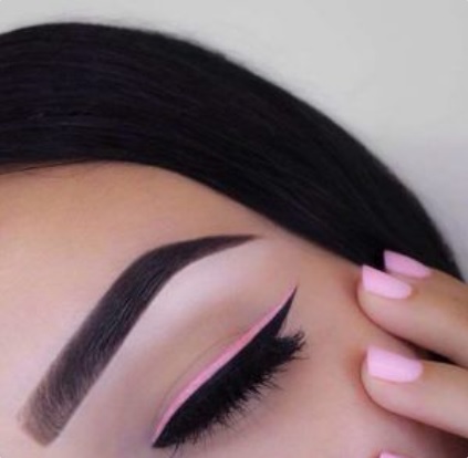 - Delineado: El cat eye adquirirá un sello único gracias al rosa. Para suavizar el tono, puedes combinarlo con negro y brindarle más énfasis a tus pestañas.