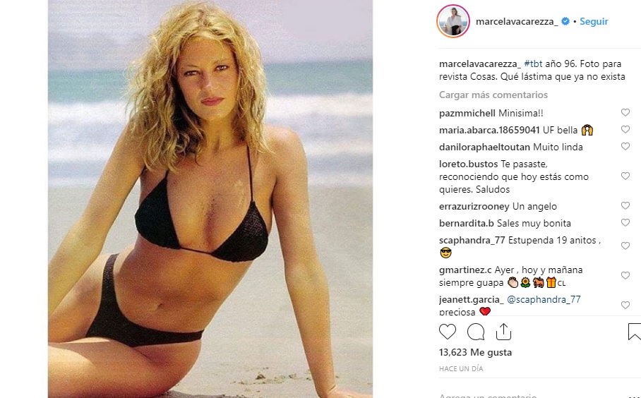 En ella Marcela aparece deslumbrante en bikini, luciendo su figura a los 26 años.