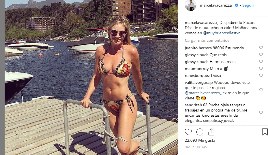 “Despidiendo Pucón. Días de muuuuchooo calor! Mañana nos vemos en @muybuenosdiastvn”, fue el comentario con el que Marcela acompañó su foto que suma ya 22 mil "Me gusta".