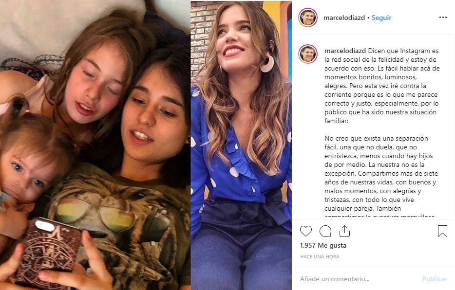 Pero además de estas declaraciones, Marcelo se refirió a su separación a través de Instagram. Este viernes publicó un sentido y extenso mensaje a su expareja que fue aplaudido por sus seguidores. "No creo que exista una separación fácil, una que no duela, que no entristezca, menos cuando hay hijos de por medio. La nuestra no es la excepción", expresa.