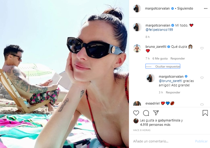 'Mi todo', escribió la modelo etiquetando a Felipe Blanco y acompañando la leyenda de un corazón.