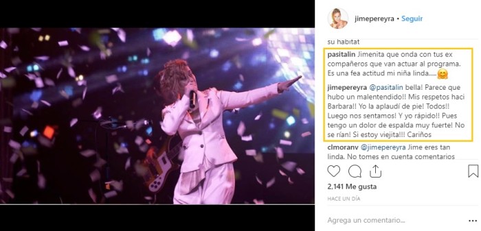 Luego de esta polémica que se vivió entre las dos ex compañeras, fue una seguidora de Pereyra quien cuestionó a la cantante por su "fea actitud".