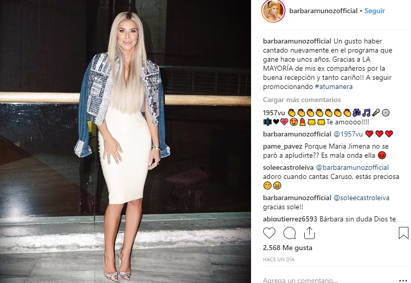 A través de su cuenta de Instagram, la artista radicada hace siete años en Estados Unidos hizo sentir su molestia. “Un gusto haber cantado nuevamente en el programa que gané hace unos años. Gracias a ‘LA MAYORÍA’ de mis excompañeros por la buena recepción y tanto cariño”, escribió Bárbara tras su regreso al programa.
