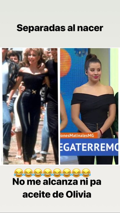 En la izquierda aparece ella con un look ajustado y sexy y en la derecha, aparece el personaje de ‘Sandy’ interpretado por Olivia Newton John en Grease Brillantina (1978).