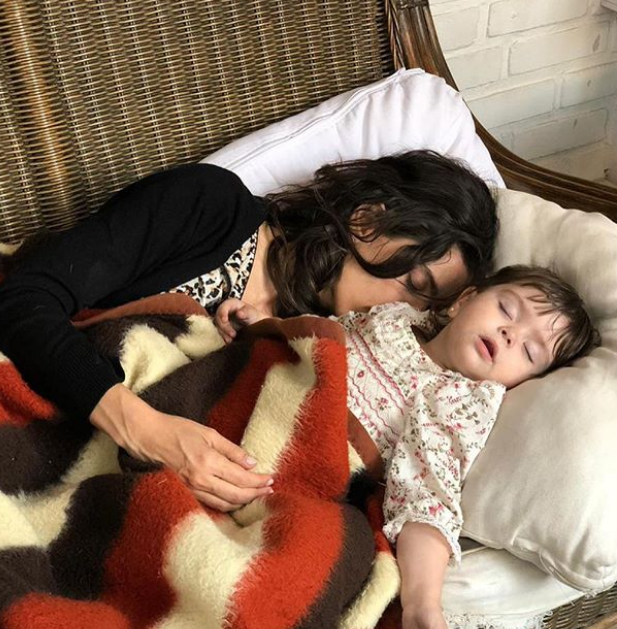 “Lo mejor del día este tuto con mi Luisa! ”, fue lo que escribió en la descripción de la imagen en que aparece durmiendo junto a su pequeña hija.