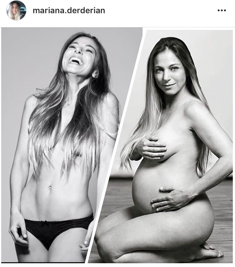 Al publicarse la imagen de la revista, Derderián aprovechó la oportunidad para mostrar cómo ha cambiado su cuerpo antes y después del embarazo, comparando dos portadas suyas en aquella publicación semanal.