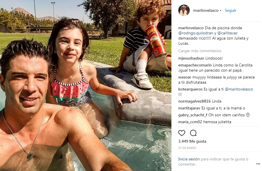 Velasco, quiso retratar lo mucho que disfruta del verano junto a su hija y así lo retrató en una foto, mientras disfrutan de un día de piscina y que se llenó de comentarios de felicitaciones de parte de sus seguidores comparando además el gran parecido que hay entre ambos.
