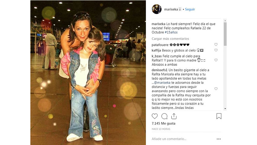 Es por eso que la parlamentaria hizo uso de su cuenta personal de Instagram para dedicarle un emotivo mensaje a su fallecida hija. "¡Lo haré siempre! ¡Feliz día el que naciste! Feliz cumpleaños Rafaela 22 de Octubre #15años", escribió Marisela.