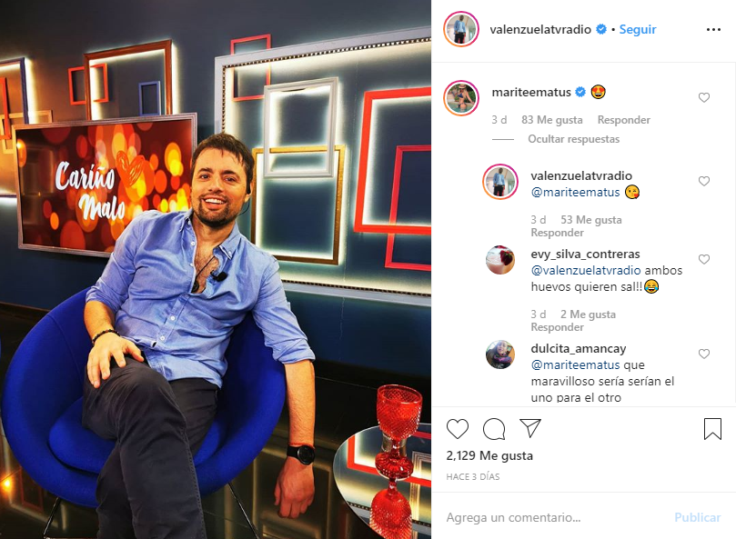 Sin embargo, sus seguidores notaron que desde hace algún tiempo que intercambia tiernos emoticones y comentarios con el conocido animador Daniel Valenzuela a través de la plataforma de instantáneas.