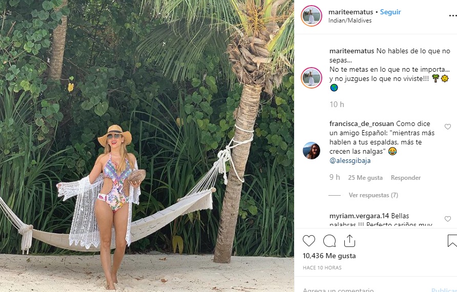 “Te pasaste guapa”; “¡Estupenda esta mujer! @mariteematus ¡¡estás más linda ahora!!”; “Qué guapa esta mujer. Qué estúpidos son los hombres… estás regia ” y “Bellísima, cada día más preciosa” y "¡Guapisima!", han sido algunos de los cumplidos que ha recibido.