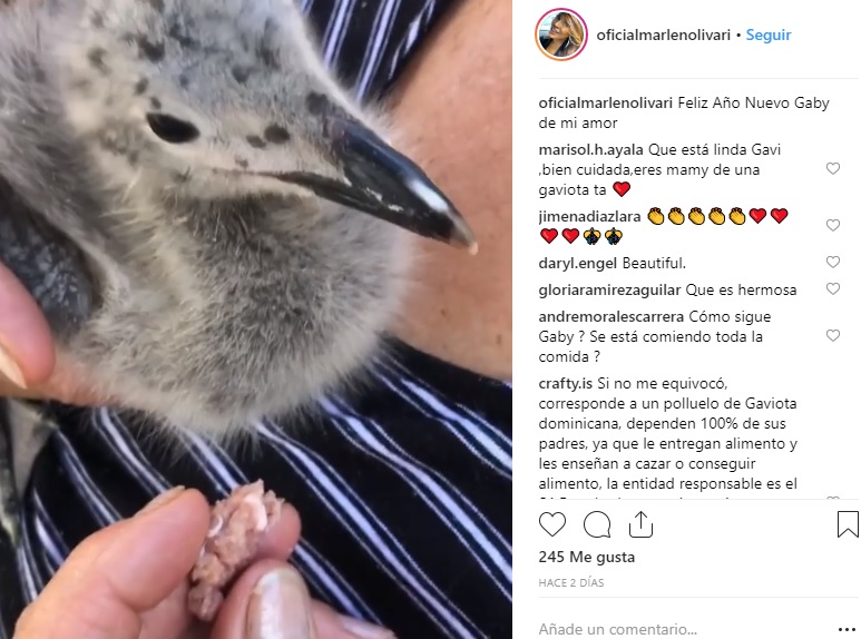 Sobre la pequeña gaviota que rescató, que bautizó como "Gaby", reveló que su recuperación es positiva.“Cada día está mejor. La idea es que cuando esté recuperada la vamos a llevar a un centro especial para estos animalitos. Por mientras la estamos atendiendo aquí, es bastante amorosa, exquisita y uno le da alimento y se encariña”.