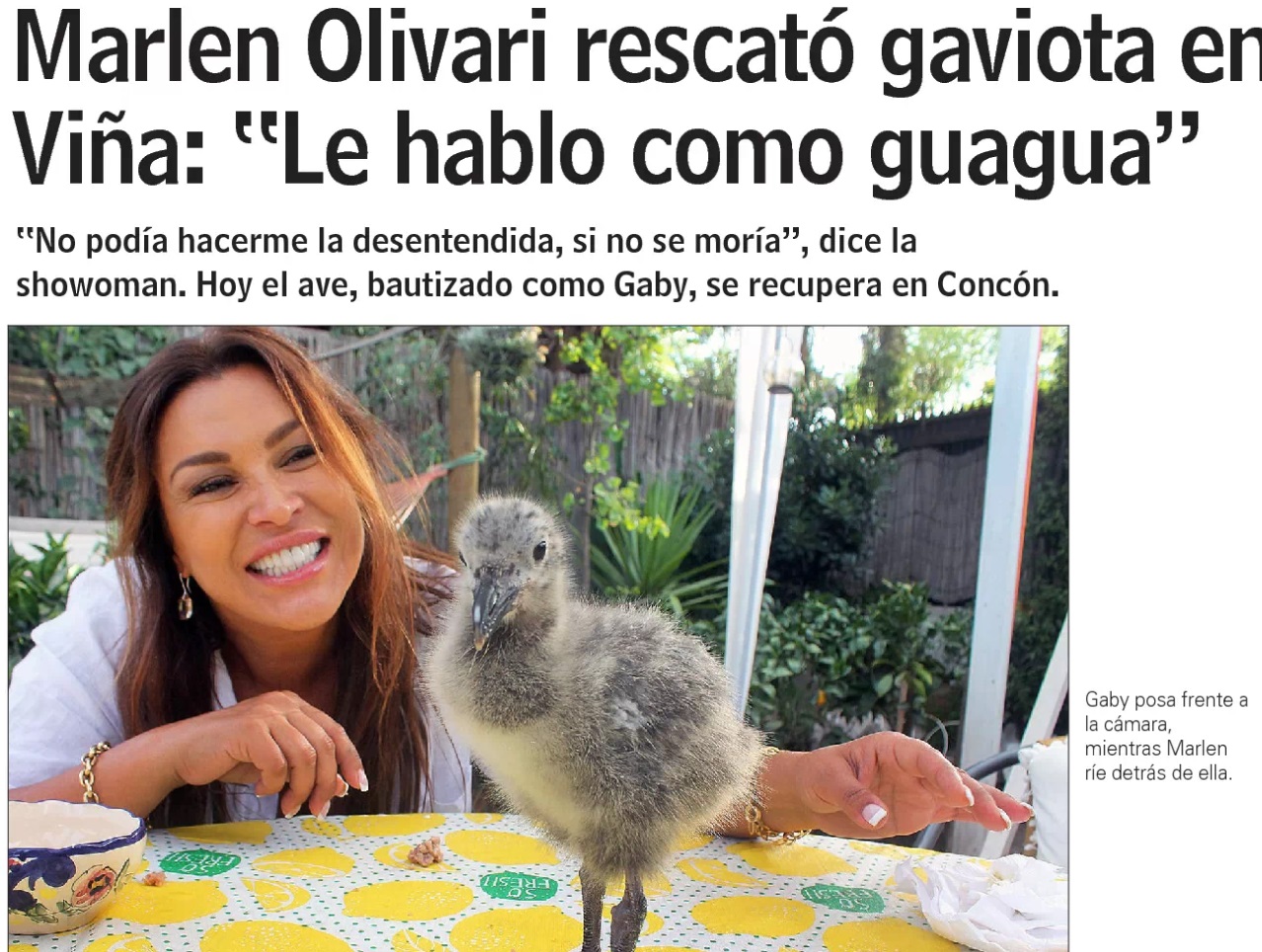 Una solidaria hazaña fue la que protagonizó Marlen Olivari, quien se encontraba conduciendo por Viña del Mar cuando se encuentra a una gaviota a punto de morir en la orilla de la calle.