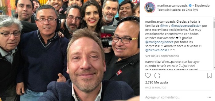 Para sellar su visita a TVN, Martín se sacó una selfie con el equipo de "Muy Buenos Días", la cual compartió agradeciendo en su cuenta de Instagram.