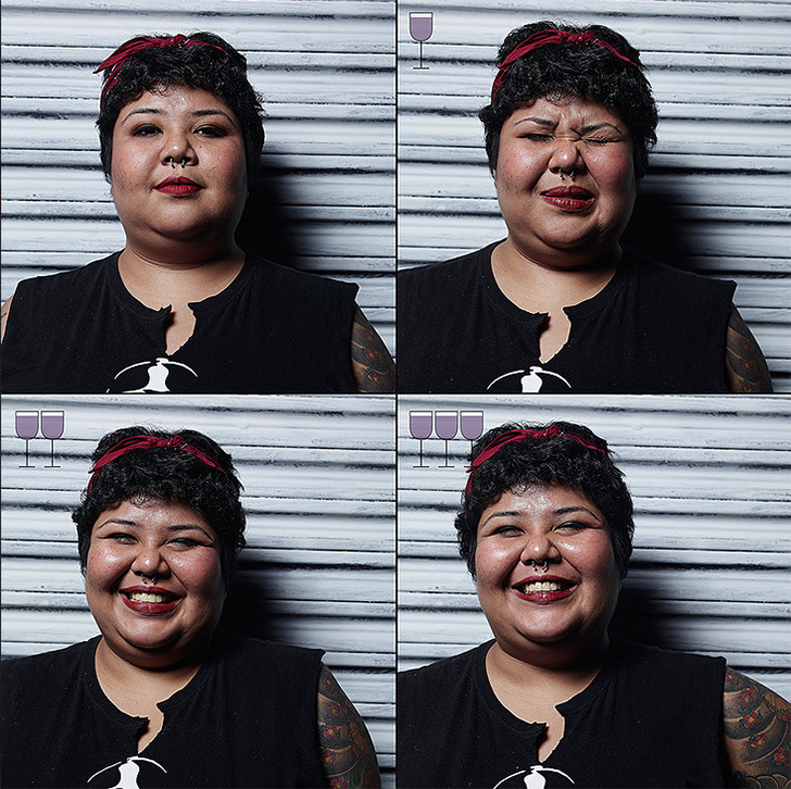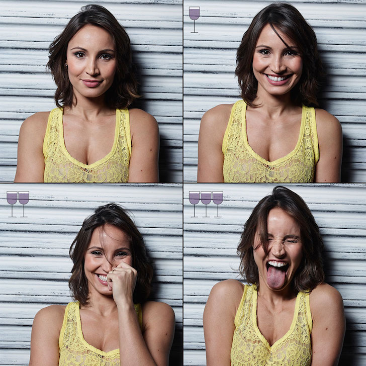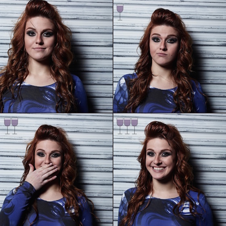 Con profesores, modelos, estilistas y profesionales que llegaron hasta su estudio de fotografía para ser parte de este proyecto, captó en sus imágenes la reacción de ellos luego de haber sido sometidos a tres copas de vinos. En la primera imagen todo sigue normal, a la segunda las cosas cambian un poco y ¿a la tercera? Compruébalo tú mism@.