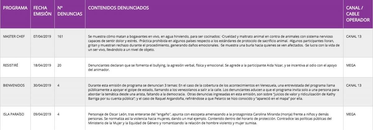 Las críticas además han traspasado la pantalla y durante el mes de abril 'MasterChef' se transformó en lo más denunciado en el Consejo Nacional de Televisión (CNTV) con 161 reclamos.