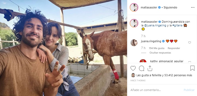 'Domingueándola con la @juana.ringeling y la #gitana 🐎☀️', escribió Matías para acompañar la foto que subió este domingo.