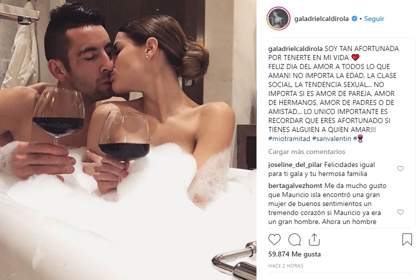 La española compartió una fotografía de ambos dándose un baño de espuma y con copas de vino tinto en sus manos, causando debate en redes sociales. Algunos consideraron que se trataba de una imagen demasiado íntima, mientras que otros aplaudieron su osadía.