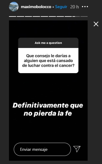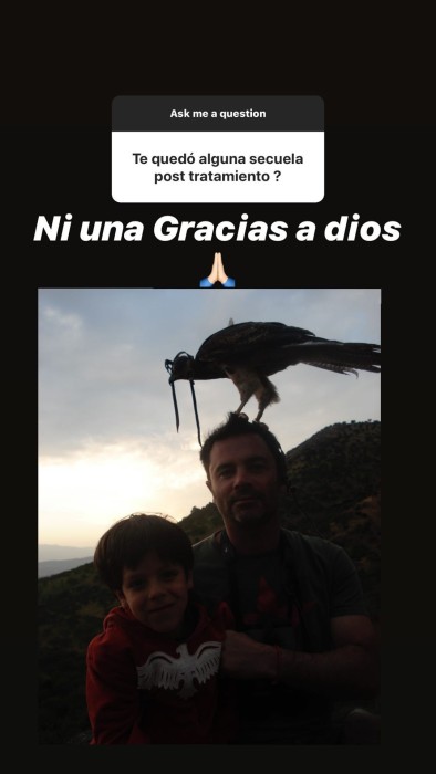 Sobre si tenía alguna secuela post tratamiento, Máximo respondió: "Ni una gracias a Dios". Su respuesta la acompañó con una foto junto al fallecido animador, Felipe Camiroaga, donde posa con él cuando era muy pequeño.