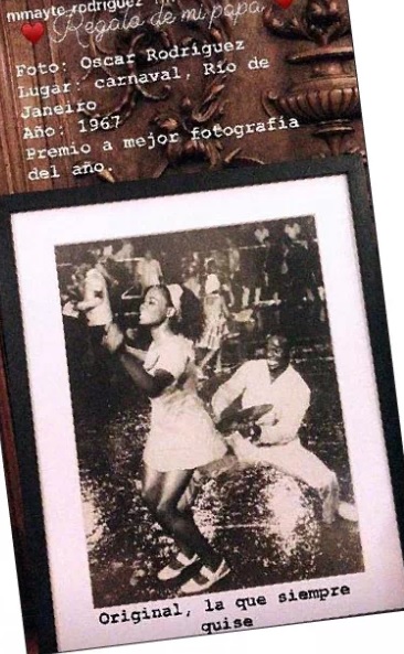 Su padre, Óscar Rodríguez, le regalo una fotografía que tomó a sus 22 años, cuando por primera vez salía del país. En la imagen, en tono sepia, se puede apreciar a un hombre tocando un platillo mientras una mujer baila en pleno Carnaval de Río de Janeiro.