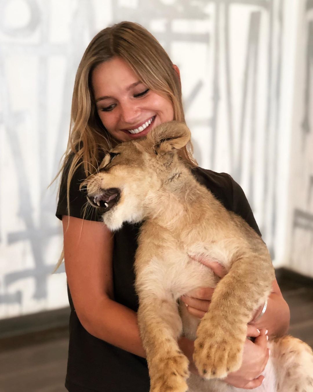 Se trata de un tierno cachorro de león con quien compartió una foto a sus más de 900 mil seguidores en Instagram. "Un sueño realidad grarr", fue lo que escribió junto a la imagen. Conocer a este pequeño león, fue gracias a la fundación Black Jaguar-White Tiger, que rescata a los animales. "Tuve la suerte de poder conocer este lugar y compartir con estos gatitos fuertes. Un sueño... #amor por los animales", escribió.