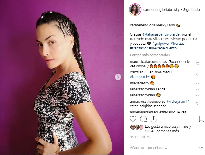 "Flow... Gracias @tatianasparrowbraider por el trenzado maravilloso! Me siento poderosa y coqueta", escribió la actriz para acompañar unas imágenes.