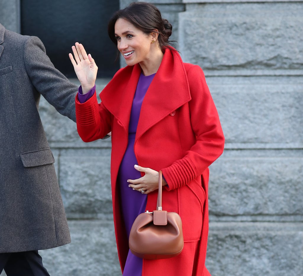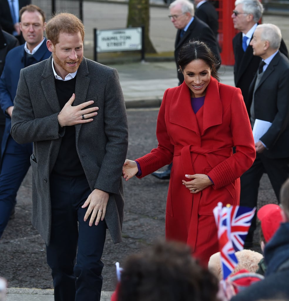 Pero este lunes reapareció junto al príncipe Harry, en una actividad protocolar, donde sorprendió con lo grande que ya se ve su pancita y que era notoria por el ceñido vestido morado que vistió y su abrigo rojo, por lo que la duquesa de Sussex robaba miradas.