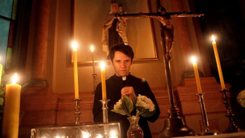 Por lo mismo, en los momentos previos al terremoto ya hemos visto llamativos momentos que están viviendo los personajes. Uno de ellos es lo que está haciendo el Padre Reynaldo (Mario Horton), quien llegó hasta Valdivia tras dar con el paradero y encontrar la casa donde vive la pequeña Eva, la hija perdida de María Elsa (Mariana di Girolamo) y Camilo Corcuera (Etienne Bobenrieth).