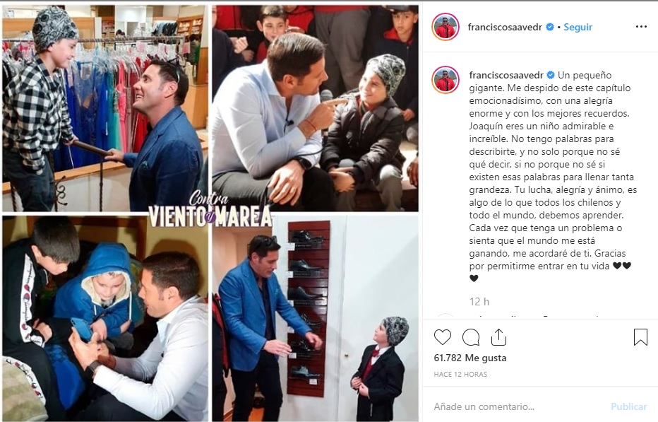"Un pequeño gigante. Me despido de este capítulo emocionadísimo, con una alegría enorme y con los mejores recuerdos. Joaquín eres un niño admirable e increíble. No tengo palabras para describirte, y no solo porque no sé qué decir, si no porque no sé si existen esas palabras para llenar tanta grandeza", partió escribiendo el comunicador.