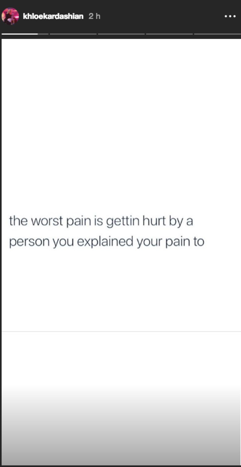 "El peor dolor es cuando te lastima la persona a la que le explicaste tu dolor", escribió Khloé haciendo alusión a su vínculo con Jordyn, quien también era su confidente.