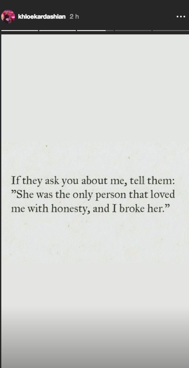 "Si te preguntan por mí, diles: 'Ella fue la única persona que me amó con honestidad y yo la quebré'", concluye Khloé en otro de los mensajes.