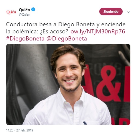 “Conductora besa a Diego Boneta y enciende la polémica: ¿es acoso?“, publicó en un post el portal internacional "Quien".