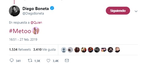 Publicación que el propio intérprete citó respondiendo con un escueto "#MeToo", aludiendo así al movimiento que defendió las denuncias de acoso que comenzaron en el 2017 desde Hollywood.