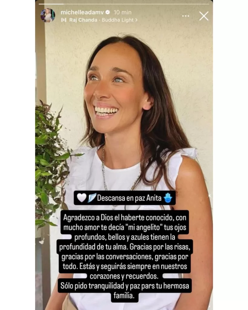 "Estás y seguirás siempre en nuestros corazones y recuerdos. Solo pido tranquilidad y paz para tu hermosa familia", expresó a modo de cierre la meteoróloga Michelle Adam en el posteo.