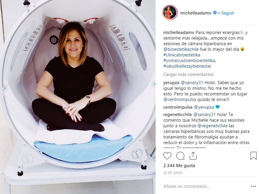 Es por esto, que hace algunos años, descubrió los beneficios de la cámara hiperbárica, luego de sufrir una lesión en su pierna. "Hace tiempo tuve una lesión en la rodilla y de casualidad conocí estas cámara, sé que no es barato el tratamiento, pero de repente hay algunos packs en promoción", fue parte de lo que dijo a La Cuarta.