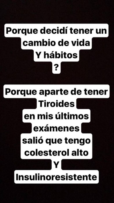 “De 78 kilos a 73,9 en sólo 10 días” fue lo que escribió en su Instagram Stories, y es que no es poco bajar 4 kilos en menos de dos semanas. La joven ha estado varios meses luchando por bajar de peso y a pesar que ama sus curvas, decidió hacer un gran cambio en su vida.