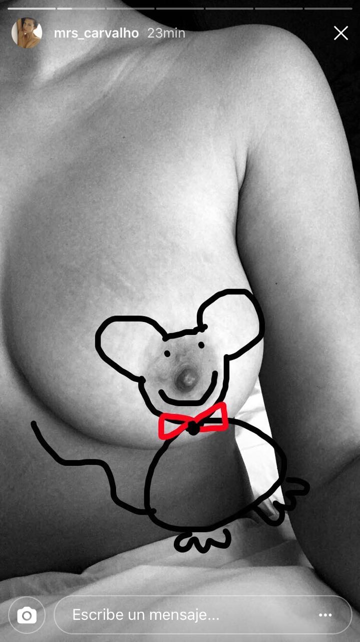 Y ahora, la ex chica reality Michelle Carvalho también quiso ser parte. Fiel a su estilo de invitar a las mujeres a celebrar y querer sus cuerpos, la brasileña compartió en sus stories de Instagram una imagen de su pecho desnudo, con un dibujo de un ratón.