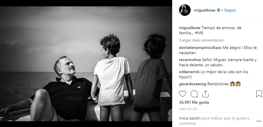 Si bien en las imágenes que Miguel Bosé compartió en su cuenta de Instagram, no podemos ver el rostro de los niños, el cantante sale muy sonriente mientras disfrutan de un viaje en barco. Asimismo, la publicación fue acompañada de la frase "Tiempo de amores, de familia".