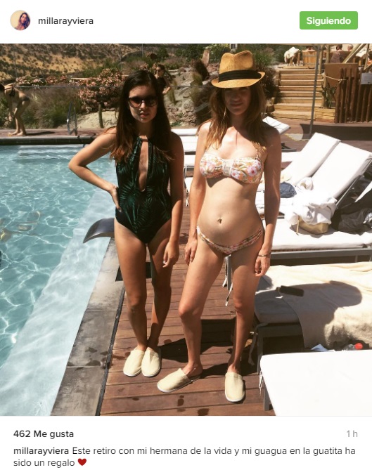 La hija del fallecido cantante Gervasio y de la ex modelo Mónica Aguirre ha compartido a través de redes sociales el avance de su embarazo. Hoy sorprendió con una foto donde aparece con una amiga en la piscina, dejando ver su pancita de embarazo luciendo un bikini.