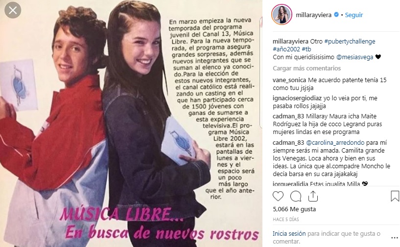 Pero esa no fue la única foto del recuerdo que Millaray compartió en su cuenta de Instagram, porque también quiso compartir una imagen del año 2002, cuando animaba el programa "Música Libre" junto a Matías Vega.