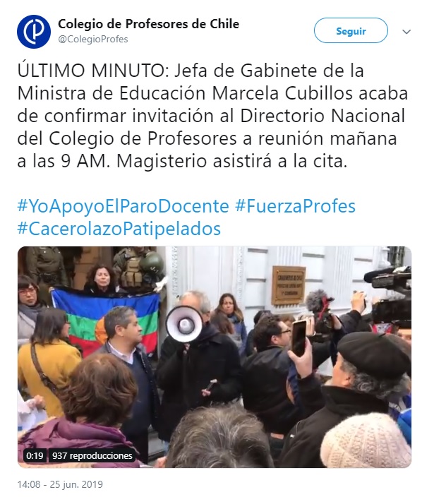 Cabe señalar que en redes sociales el llamado a diálogo de Cubillos causó polémica por el tono "agresivo" de su mensaje. El Colegio de profesores, por su parte, confirmó su asistencia a la reunión de este miércoles.
