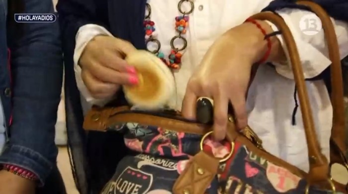 ¡La mamá llevaba 20 panes amasados en su cartera! “El pan es muy malo allá, y yo no puedo vivir sin el pan”, indicó la viajera, mientras presentaba el alimento frente a la cámara. “No te vayas a reír”, remató.