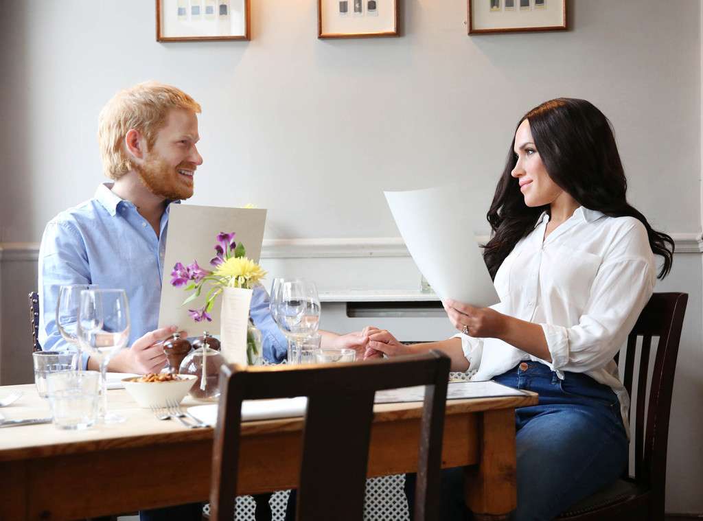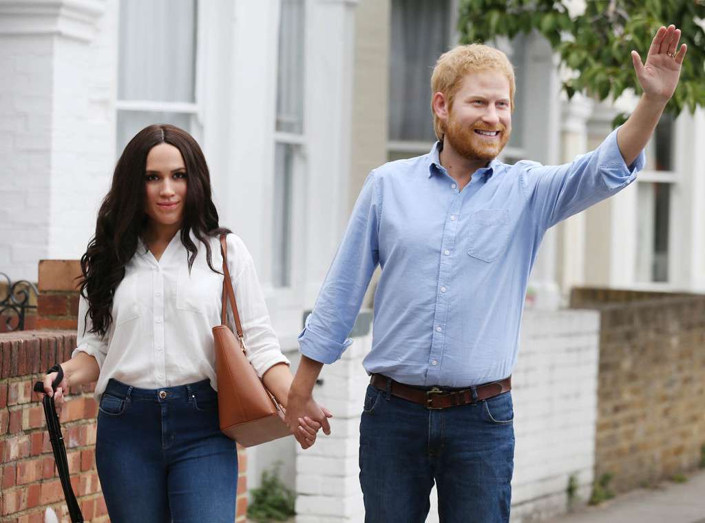La pareja de imitadores incluso lució la misma ropa que los recién casados. Ella llevó una camisa blanca de botones, jeans y un bolso café. El look fue similar al que Meghan usó en su primera aparición oficial como pareja en los Juegos Invictus 2017.