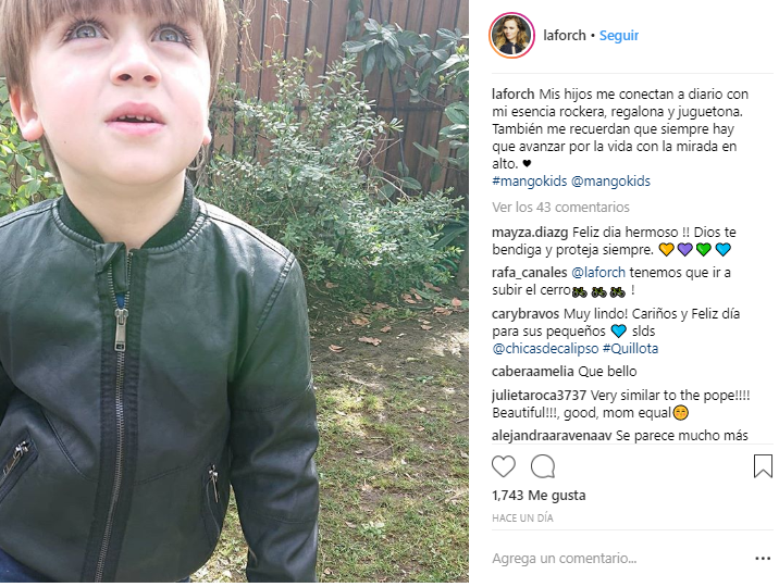 La publicación la hizo por el Día del Niño, y escribió: "Mis hijos me conectan a diario con mi esencia rockera, regalona, y juguetona. También me recuerdan que siempre hay que avanzar por la vida con la mirada en alto".
