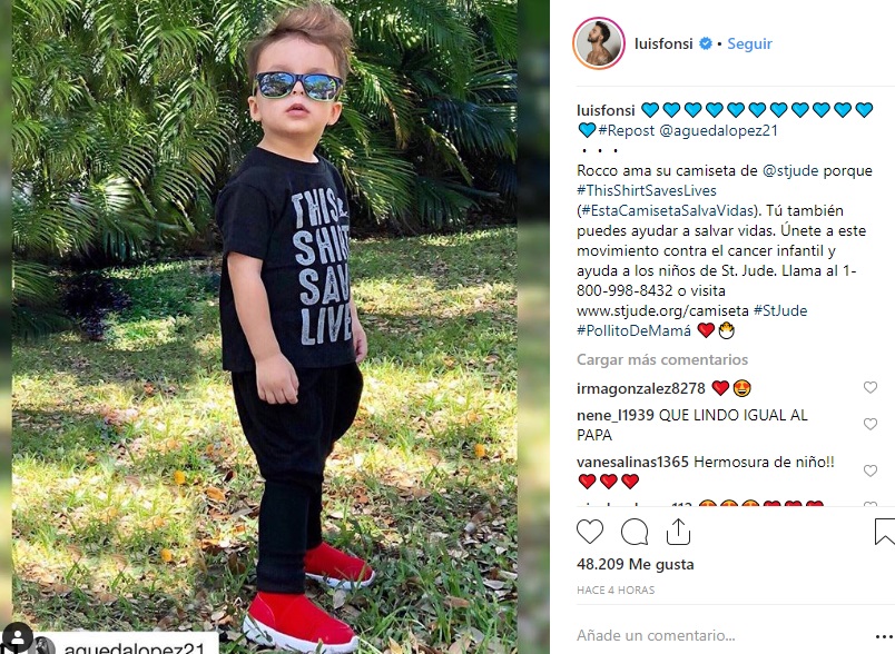 La foto ya acumula más de 70 mil "Me gusta", donde muchas fans dejaron tiernos mensajes como "Mini Fonsi"; "Qué grande está Rocco"; "Qué Dios lo bendiga" y "Wow!! Puro estilo".