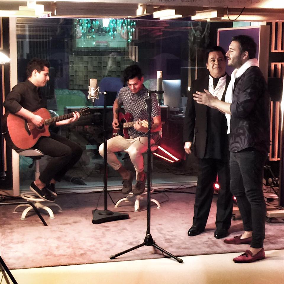 Los mexicanos que estuvieron presentes en los estudios de nuestra radio hace algunos días, ya regresaron al trabajo. Esta vez, se reunieron con Juan Gabriel para trabajar juntos en una nueva canción. Si bien es cierto que hace algún tiempo daban señales de que tendrían la colaboración de otros artistas dentro de su próximo disco, no habían dado nombres.