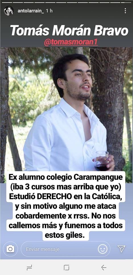 El nombre del sujeto es Tomás Morán, y según reveló Antonia, iba en el mismo colegio que ella, tres cursos más arriba.