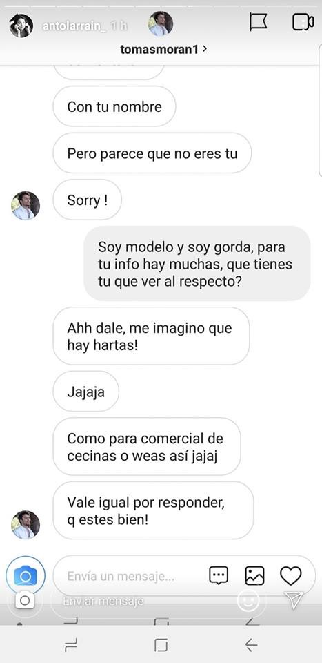 Cabe destacar que tras denunciar al usuario, Antonia recibió el apoyo de muchos de sus seguidores, quienes repudiaron el actuar del hombre e incluso algunos se unieron al #Chanchachallenge, es decir, mandaban sus fotos con una nariz de chancho para apoyar a la modelo.