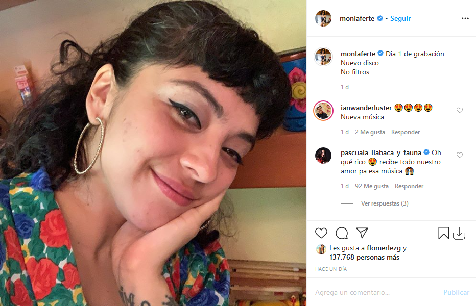 Y es que Mon le ha sacado el jugo a estos días de cuarentena para grabar un nuevo disco, material que sucederá a "Norma", que agrupa exitosos singles como "Ronroneo", "Caderas blancas" y "El beso". Por el momento no hay mayores detalles pero poco a poco la cantante ha publicado algunos de sus momentos privados de creación para que sus seguidores se sientan parte del proceso.