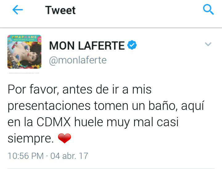 El éxito trae cosas buenas y también uno que otro dolor de cabeza producto de las bromas que circulan en redes sociales. Así, la cantante nacional tuvo que salir a desmentir un rumor que comenzó a circular en Twitter, donde se mostraba un supuesto mensaje en que Laferte ofendía a su público mexicano.
